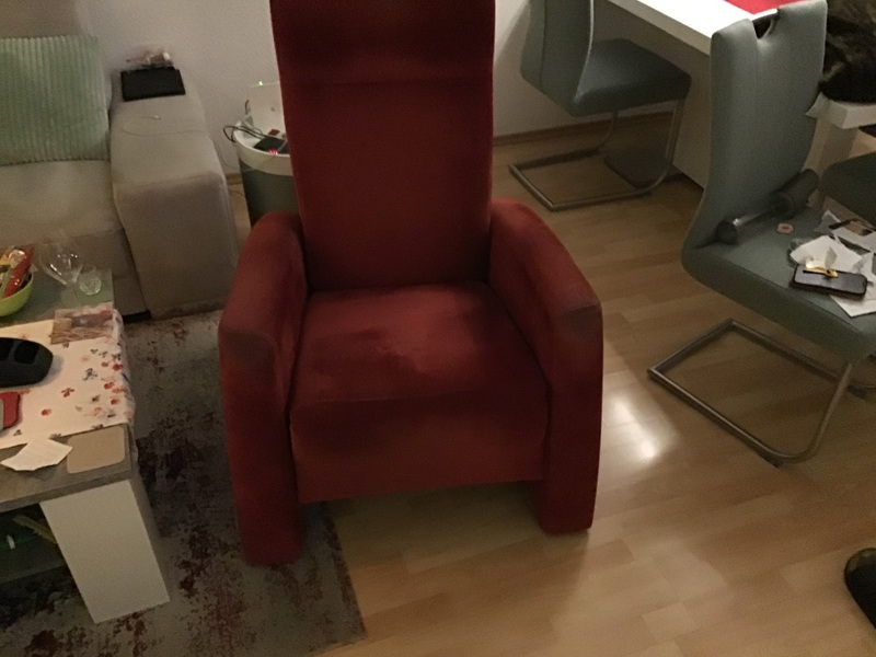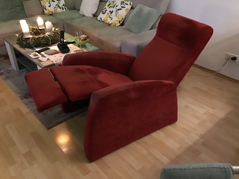 Ich verschränke einen roten Sessel zweifach verstellbar, Mit Gebrauchsspuren
