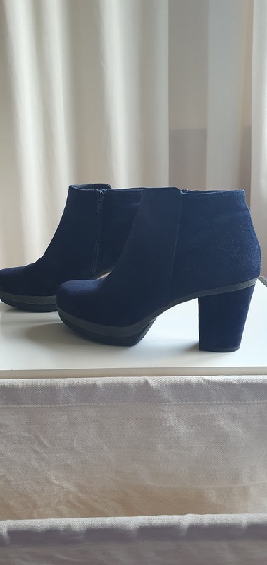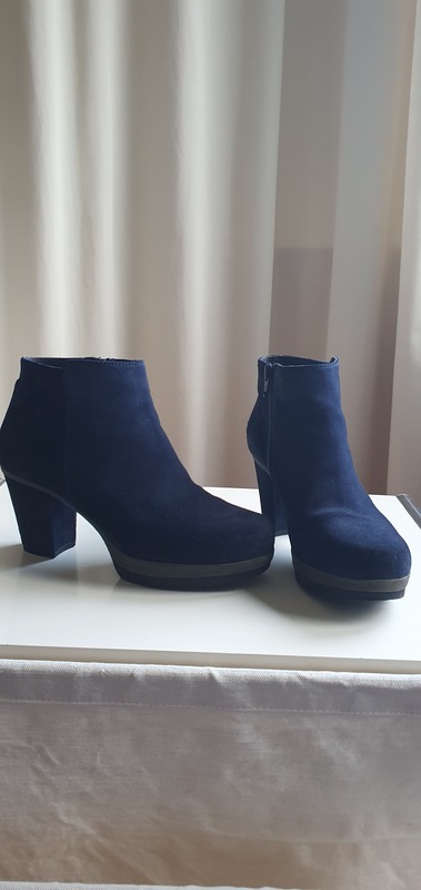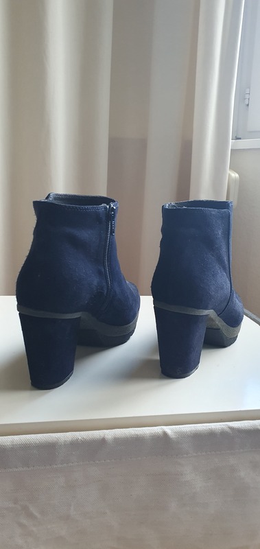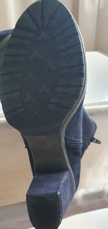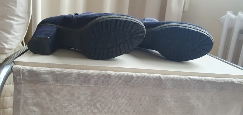Blaues Napaleder , Reißverschluß , rutschfeste , 2,5cm hohe Plateausohle ,Absatzhöhe : 5 cm .