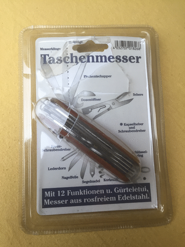 Das perfekte Überlebenswerkzeug – ein Multitasker, der jede Situation mit 12 Funktionen meistern kann. Sammlermesser mit hochwertigen Schalen, rostfreiem Edelstahl und Gürteletui. Dieses tolle Messer sucht jetzt einen liebevollen Neubesitzer und ist ein tolles Geschenk. Neuer, unbenutzter und unbeschädigter Artikel in der original Verpackung, siehe Fotos, Tierfreier Nichtraucherhaushalt! Privatverkauf, siehe Fotos, jetzt nur 12€, Versand (€ 3,00) bei Kostenübernahme möglich