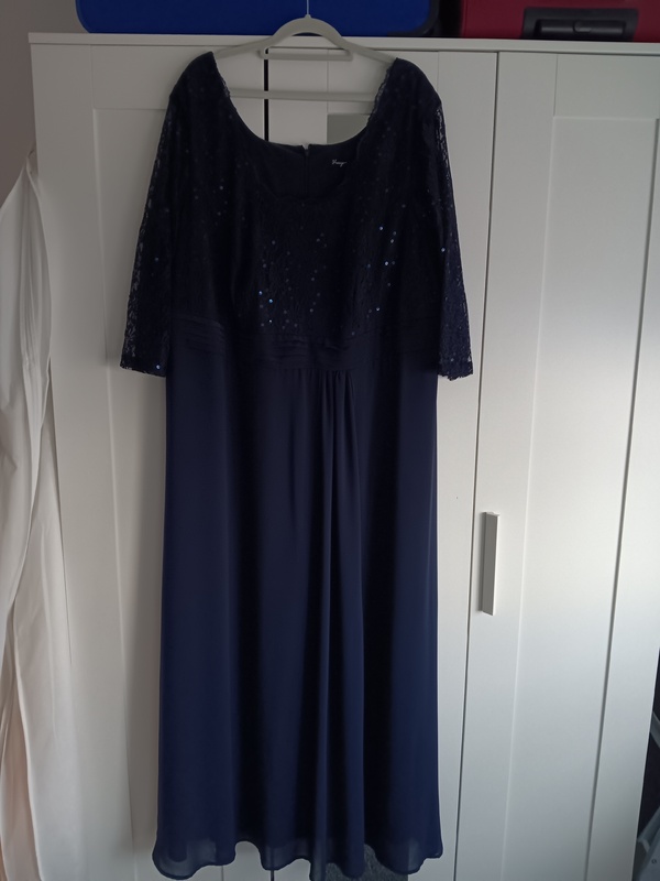 Ich biete hier ein schönes Abendkleid der Marke Sheego in Gr. 52 in dunkelblau an. Das Kleid ist im Oberteil aus Spitze und mit Pailletten besetzt. Es wurde lediglich einmal getragen und anschließend gereinigt. Es ist bei 30 Grad waschbar. Preisvorstellung 60 €.