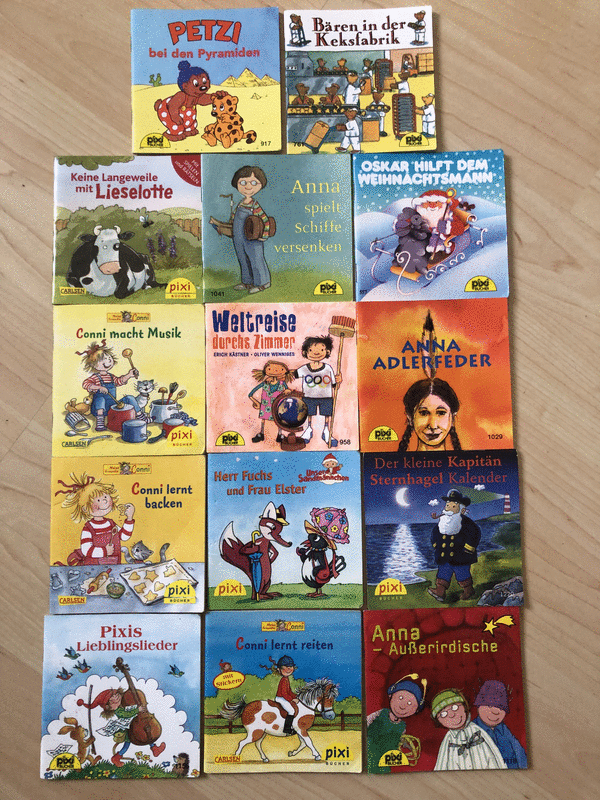 31 Stück Kinder Sammelbücher, Alter: ab 3 Jahre, niedliche Geschichten mit der beliebtesten Kitty Katze der Welt! Pixi wurden speziell für die Bedürfnisse der Allerkleinsten und ihrer Familien entwickelt. Die Bilderbücher passen in jede Tasche, sind extraleicht und damit ideal für unterwegs. Mit liebenswerten Illustrationen und alltagsnahen Themen begleiten sie die Kleinsten beim Entdecken ihrer Welt. Diese schönen Bücher suchen jetzt einen liebevollen Neubesitzer, ein nettes Geschenk und Mitbringsel für Ihre Kleinen, unbeschädigte Artikel im sehr guten Zustand, Tierfreier Nichtraucherhaushalt! Privatverkauf, siehe Fotos, jetzt nur 0,60€/Stück oder alle 31 Bücher für 16€, Versand (€ 1,00 - 3,00) bei Kostenübernahme möglich