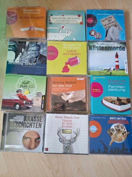 Hörbücher. Abzuholen in Schwanewede. Kein Versand. Über 70 Hörbücher Zusammen 55 €. Abzuholen in Schwanewede. Fahre täglich Richtung Bremen Vahr. Kein Versand.