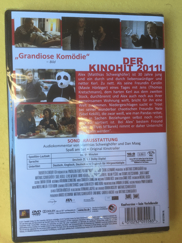 eine nette lustige Komödie. Schweighöfer kopiert als Regisseur seinen Kumpel Schweiger, hat aber als Darsteller viele Lacher auf seiner Seite. Die Story ist durch lustige Gags, die positive Location in Frankfurt und die bezaubernde Sibel Kekilli, die jede Menge Charme versprüht sehr unterhaltsam. Wer etwas Unterhaltsames sucht kommt hier voll auf seine Kosten. Diese DVD sucht jetzt einen liebevollen Neubesitzer, ein tolles Geschenk für einen Kino-Fan. Tierfreier Nichtraucherhaushalt! Neuer, unbenutzter Artikel in der verschweißten Originalverpackung, siehe Fotos, Neupreis 25€ jetzt nur 6€, Versand (€ 3,00) bei Kostenübernahme möglich