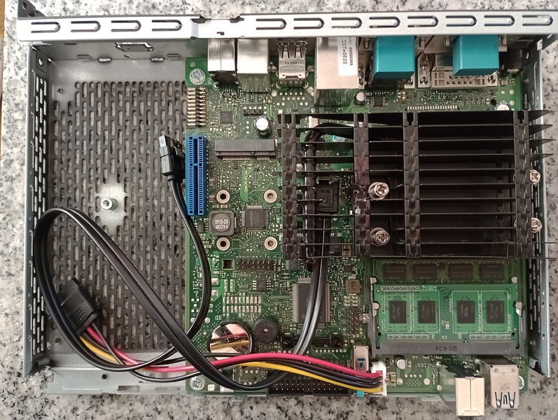 4GB RAM , mSATA SSD mit Linux Mint, beides nach Wunsch aufrüstbar, SATA- und Power-Anschluss vorhanden, zum Einbau von 2,5 Zoll SSD oder auch Festplatte, Platz dafür vorhanden Windows und/oder Linux installierbar, Ethernet (RJ-45), seriell, 2xUSB 3.0, 4xUSB 2.0, DVI , Displayport , Mic + Headphone, Line in/-out.