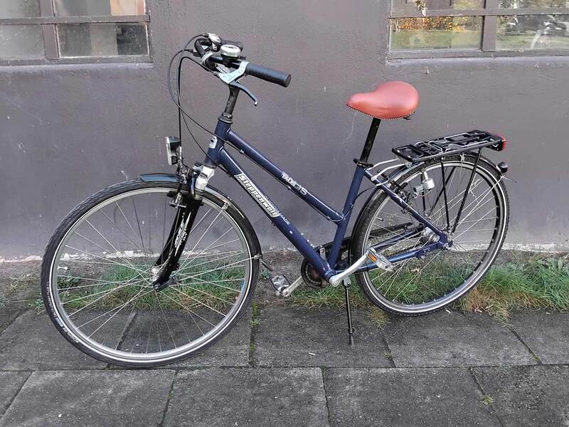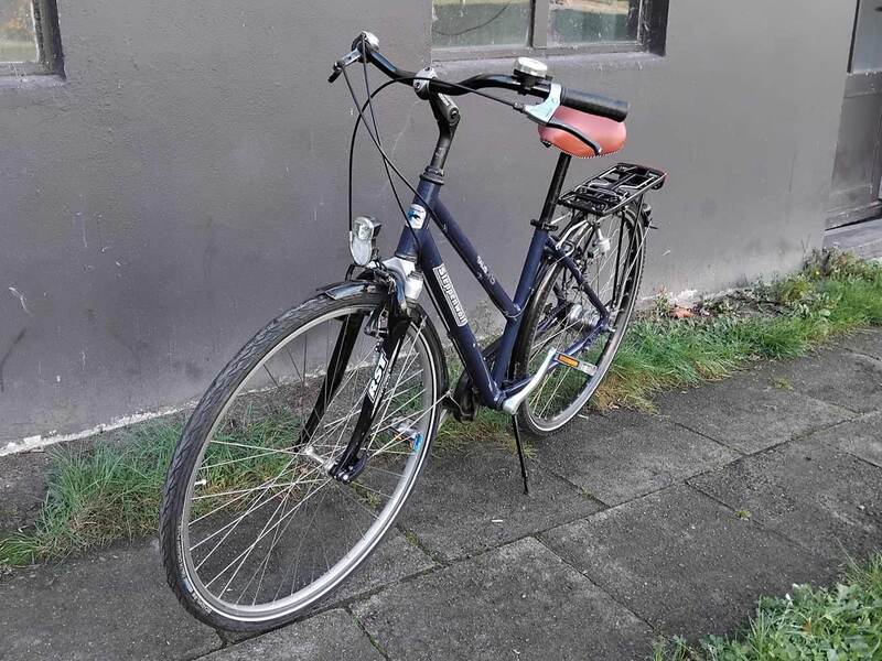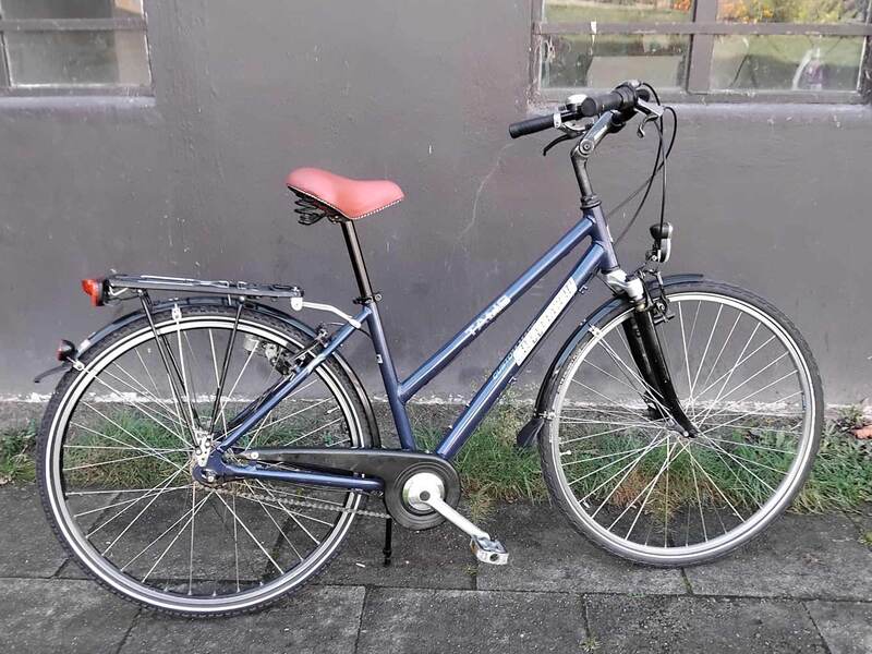 Es wurde einer großen Inspektion mit teilweiser Neuteil versorgung unterzogen. Rahmenhöhe 46 cm für Leute ab 1,55 m geeignet. Led-Beleuchtung, 7 Gänge Nabenschaltung, V-Brake Handbremsen und Rücktritt, die Federgabel klemmt. Mit seiner Ausstattung ist es für den Straßenverkehr gut gerüstet.