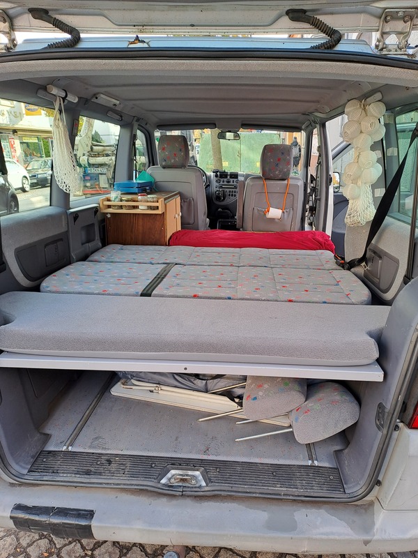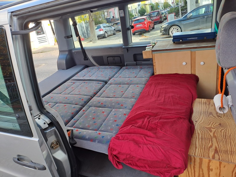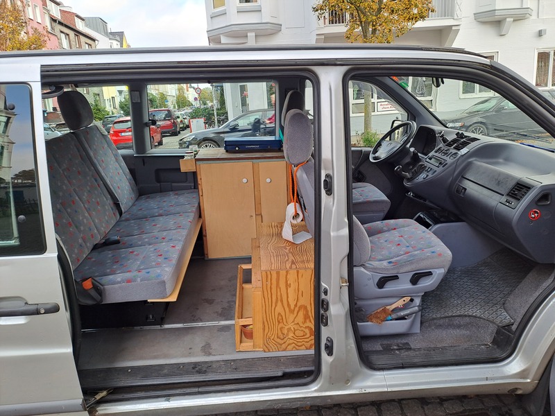 Sie ist ein treues Gefährt und wird ausschließlich aufgrund veränderter persönlicher Lebensumstände verkauft. Sie hat eine Westfalia Rückbank und anclippbare Gardinen integriert, sodass man sowohl zu fünft mit ihr fahren, als auch darin schlafen kann. Der Umbau geht schnell. Mit zwei Erwachsenen, einem Kleinkind und einem Hund kommt man darin zum Schlafen unter (mehrfach erprobt). Außerdem gibt es einen selbstgefertigten Ausbau mit einer Kommode und Kiste zum Verstauen von Dingen. Unter der Sitzbank kann man außerdem sehr gut kleine Rollcontainer verstauen (dazu kann ich auch ggf persönlich mehr erzählen). Wer den Camper-Traum ausprobieren möchte, ist hier absolut richtig. Da es nicht so hoch ist kann man außerdem auch besonders schöne Stellplätze erreichen (siehe Fotos).