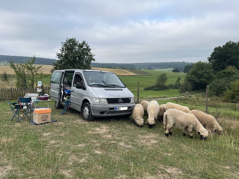 Mit abgegeben werden kann auf Wunsch: Ein Vordach für Sonne/Regen (siehe Fotos), ein Camping-Tisch, Gaskocher und Flasche, Wasserkannister, Geschirr, ein nicht-elektrischer Kühlschrank (kühlt bis zu 4 Tage, dann müssen die besonderen Kühlakkus wieder aufgeladen werden), Bluetooth-transmitter für Musik übers Handy und die Möglichkeit während der Fahrt aufzuladen, Lampe und Powerbank in einem, Campingtisch (Westfalia).