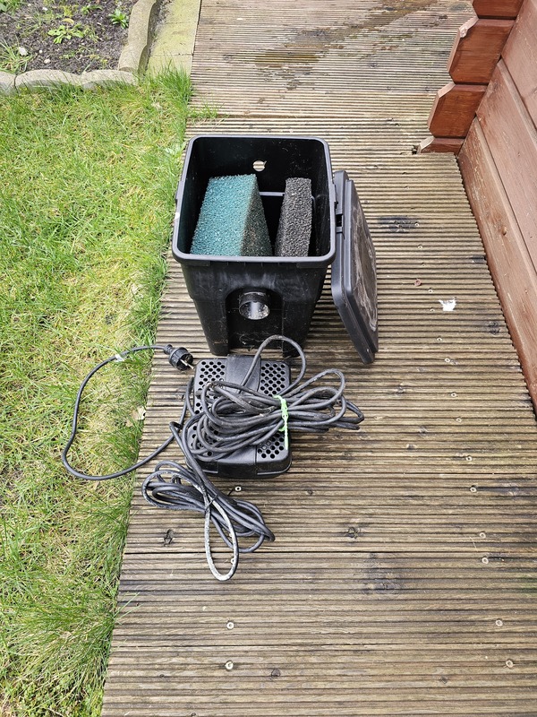Wegen Teich Aufgabe wird nur alles zusammen verkaufen, ein PE Teichbecken ca. 500 bis 600 Liter Becken, 4 bis 5 Goldfische, 2 x Filter Oase, ein Sauerstoff Sprudeler Oase, 4 Deko Unterwasser Artikel, 2x Teich Fangnetze und ein Teichsauger , Goldfische. Preis: 255 Euro V.B.