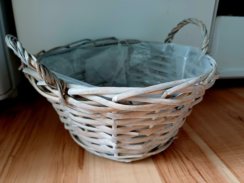 Innen mit Plastik Folie, daher sehr gut als Pflanzgefäss benutzbar.