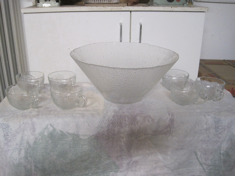 Ich biete hier ein Bowle Service aus Glas ohne Deckel an.