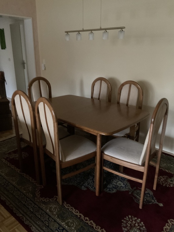Tisch 85 mal 135 kann auf 180 verlängert werden. Kann ab Samstag in Schwachhausen abgeholt werden.