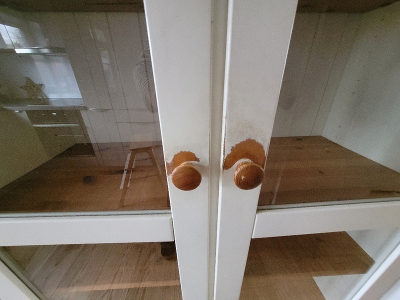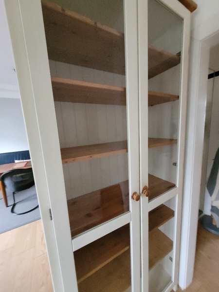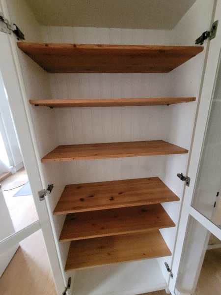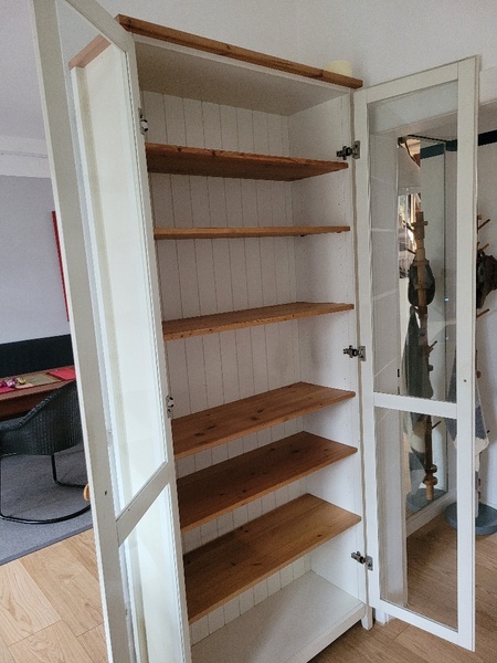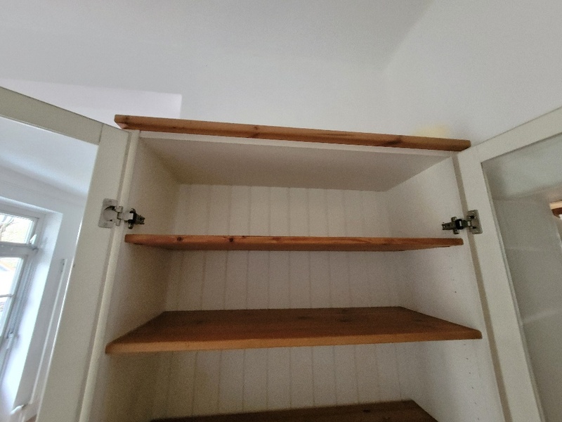 Geschirrschrank, weiß, gebraucht; auch geeignet als Wäscheschrank, zu verkaufen. Die Maße: 216cm hoch, 92 cm breit (innen 83cm) und 35cm tief incl. Türknauf (innen 30 cm); 6 Einlegebögen aus Massivholz (83x30) ; FP 75€ , bei Ausbesserung der Abnutzungsspuren am Türknauf 90€. Privatverkauf, keine Rücknahme / Garantie; Abholbereit in Bremen-Findorff, bei Interesse bitte Mail.