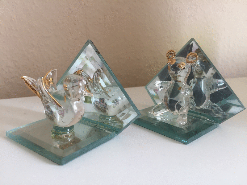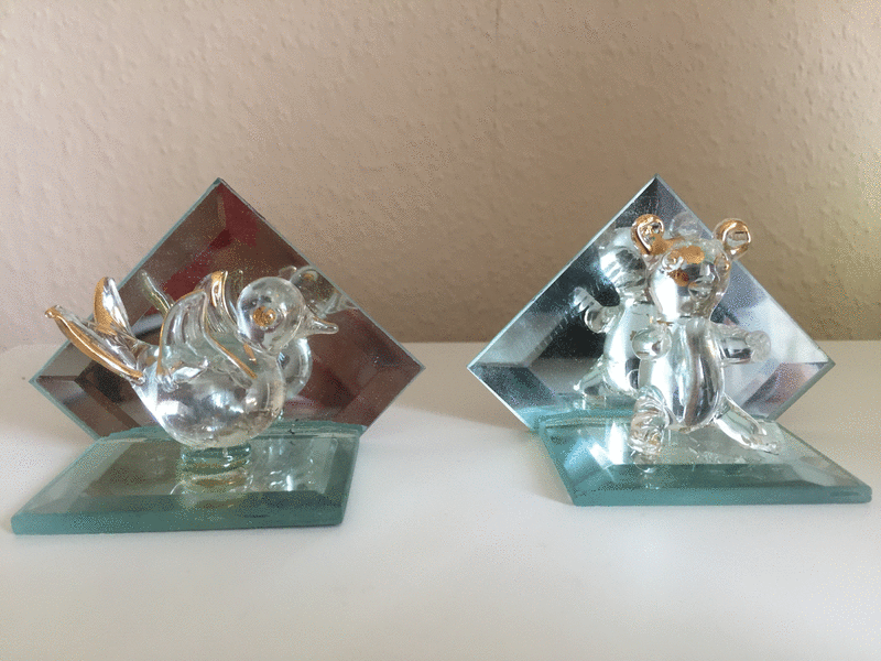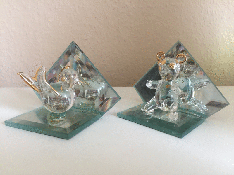 Sammlerstücke - Deko Glaskunst - Maus und Vogel auf Spiegelelementen, Farbe: Gold und Klar, Maße: ca. B70 x H55 x T40 mm. Diese schönen Figuren aus Kristallglas suchen jetzt einen liebevollen Neubesitzer und sind ein tolles Geschenk zum Einzug in die neue Wohnung oder der Hingucker in Ihrer Sammlung. Neuer, unbeschädigter Artikel in der Originalverpackung. Tierfreier Nichtraucherhaushalt! Privatverkauf, siehe Fotos, jetzt nur 9€/Stück oder beide Figuren 15€, Versand (€ 4,00) bei Kostenübernahme möglich