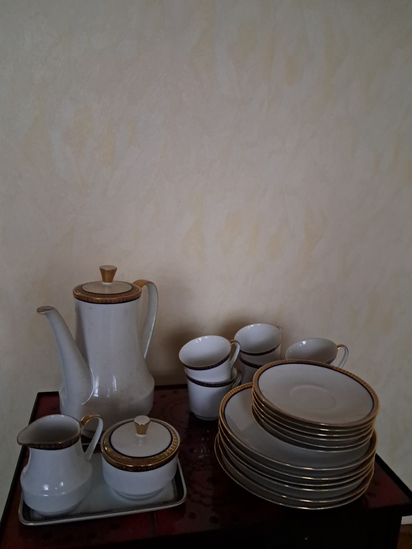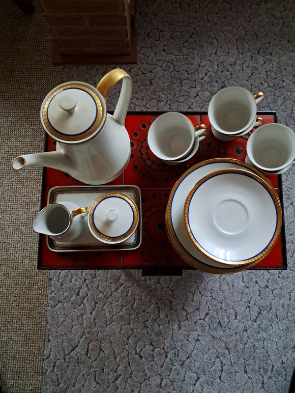 Hallo ich verkaufe hier ein Komplettes Kaffeeservice in der Farbe blau weiß mit Goldrand. Alles in einem sehr guten Zustand. Bei Interesse gerne melden. 35 €.