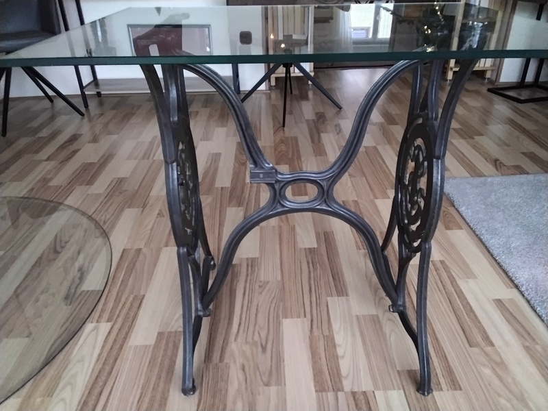 Ich biete ein Nähmaschinenuntergestell von Singer, mit Glasplatte 80x60, Dicke 10mm. Alles sehr gut erhalten. Preis 60 Euro. Sofort abholbereit. Darauf kann schön der Tannenbaum platziert werden.