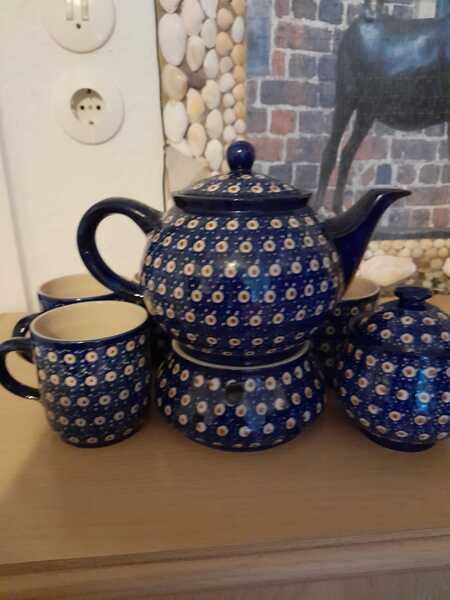 4 Tassen, 1Teekanne (1Liter), 1 Stövchen, 1 Zuckerpot mit Deckel