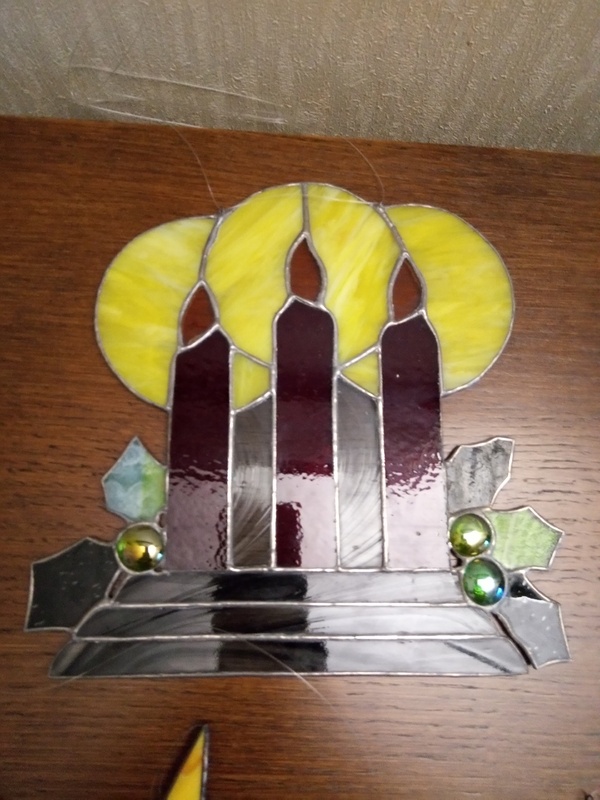 Tiffany Art Glas Handarbeit für das Fenster Tiffany Art Glas Handarbeit für das Fenster Katze 38cm lang, hoch 19 cm 32 Euro, Kerzen für Weihnachten hoch 22cm breite 22cm 32 Euro