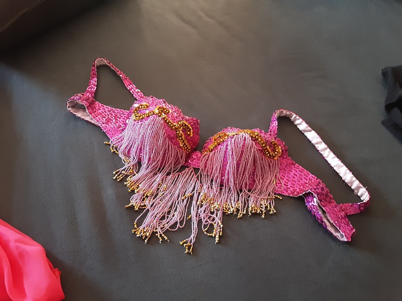 Wegen Hobbyaufgabe verkaufe ich diverse Bauchtanz-Kostüme Größe M /S, 1 Catsuit schwarz mit langem Arm und Netzeinsatz, Hüftgürtel und-Tücher, Schleier und Fächerschleier - s. Fotos, weitere können bei Interesse erstellt werden.