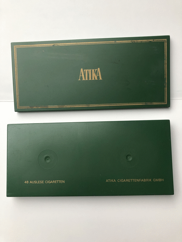Hier kommt eine originale Atika-Kassette um 1970, Maße ca. 20,3 x 9 x 2 cm von der Atika Cigarettenfabrik GmbH, die in keiner Sammlung fehlen sollte. Diese Rarität sucht jetzt einen liebevollen Neubesitzer und gehören zur Dekoration in eine Ausstellung oder als Hingucker in Ihre Vitrine, ein tolles Geschenk für einen Sammler oder eine Trophäe für sich selbst. Guter und unbeschädigte Artikel, Privatverkauf, siehe Fotos, jetzt nur 12€ Versand (€ 3,00) bei Kostenübernahme möglich