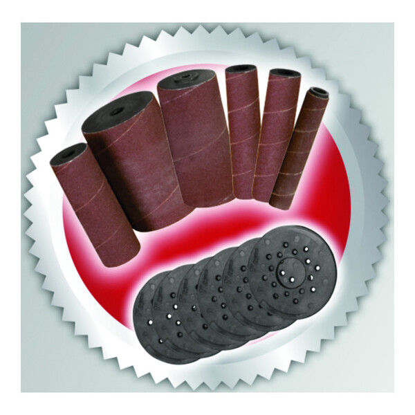 Inklusive 6x Schleifhülsen Ø 13-19-26-38-51-76 mm