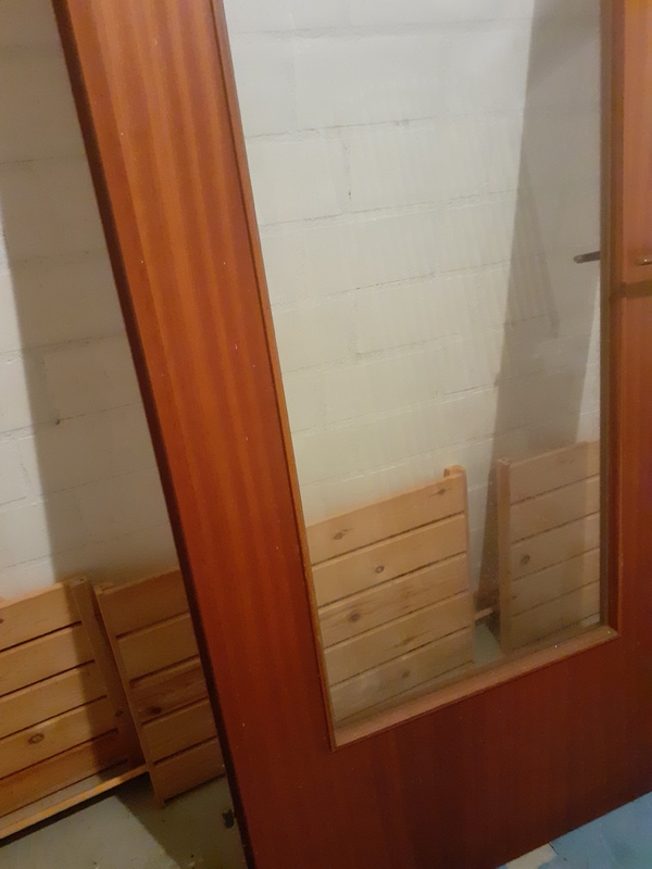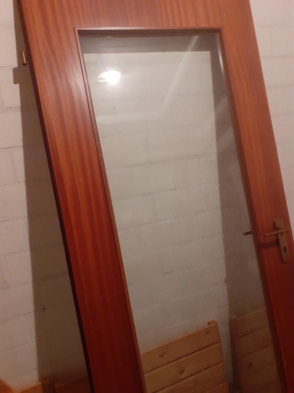 Umständehalber verkaufe ich hier eine neue Holzwohnzimmertür (Buche?) mit großem Glasausschnitt. Normmaße : 198 x 83,5 cm.