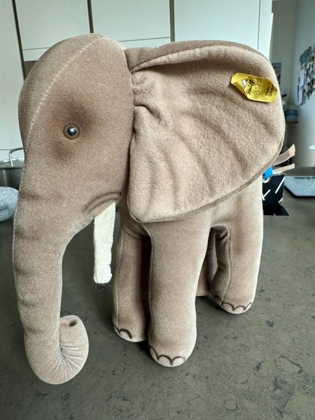 Elefant Trumpy von Steiff, 0510/28, in gutem Zustand, ein Stoßzahn ist etwas verkürzt, deshalb kostet er nur 40 €.