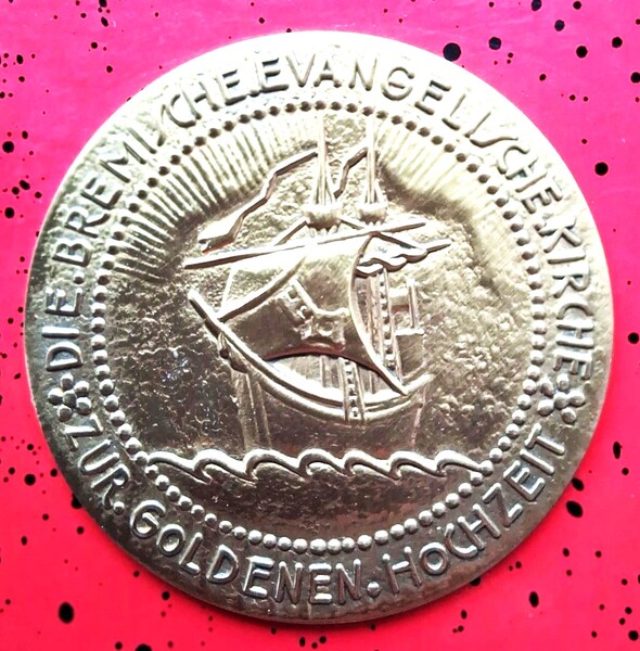 MEDAILLE ZUR GOLDENEN HOCHZEIT der bremischen evangelischen Kirche. Bronze 75mm. Preis 15,00 €