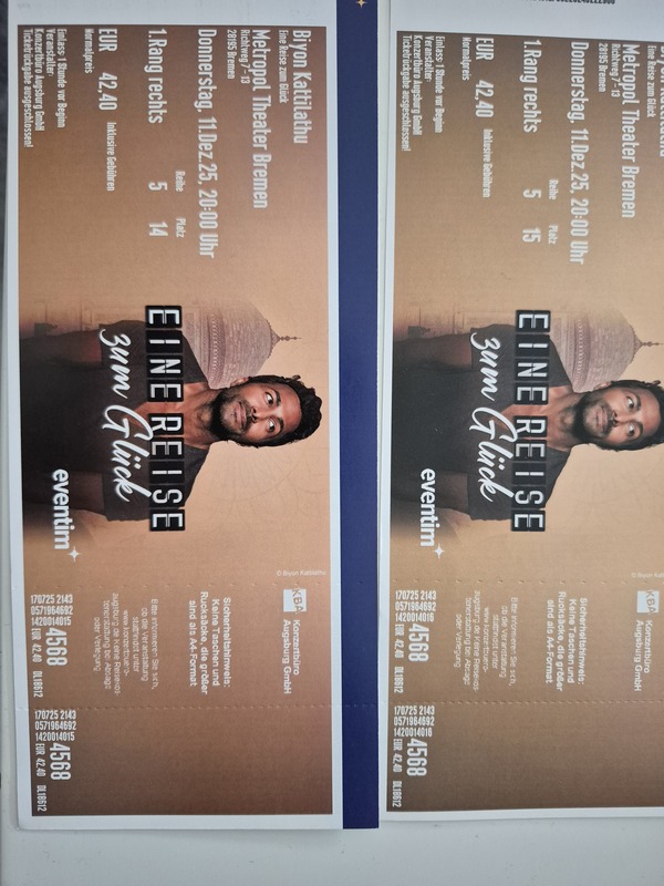 Ich biete zwei Karten für die " Eine Reise zum Glück" Tour von Biyon in Bremen, Metropol Theater, am 11.12.25 an.