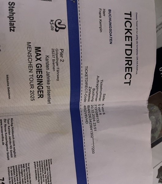 Hallo zusammen, spontan unserer Karten für heute Abend Aladdin Bremen für den Sänger Max Giesinger. Beginn ist um 19:30 Uhr. Die Karten haben 106 € gekostet und wir geben sie für 80 € ab.