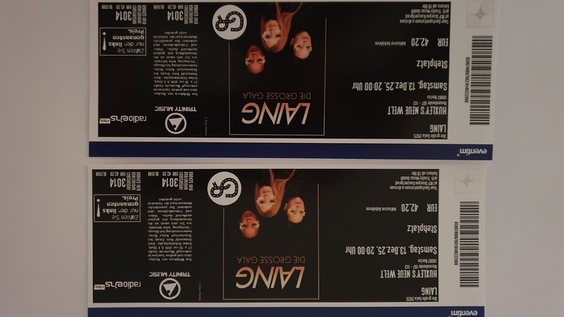 biete zwei Tickets für das Konzert von Laing in Berlin am 13.12.2025, 20Uhr, in der Hasenheide.