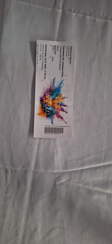 Hallo, ich verkaufe ein Ticket für Feuerwerk der Turnkunst am 22.1.26 um 17 Uhr.