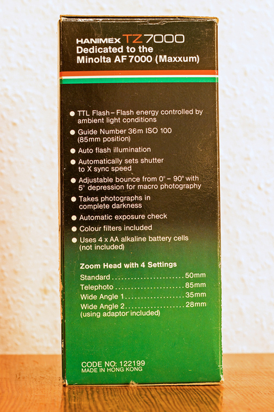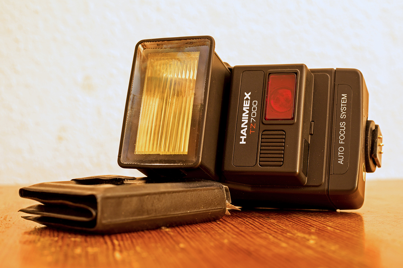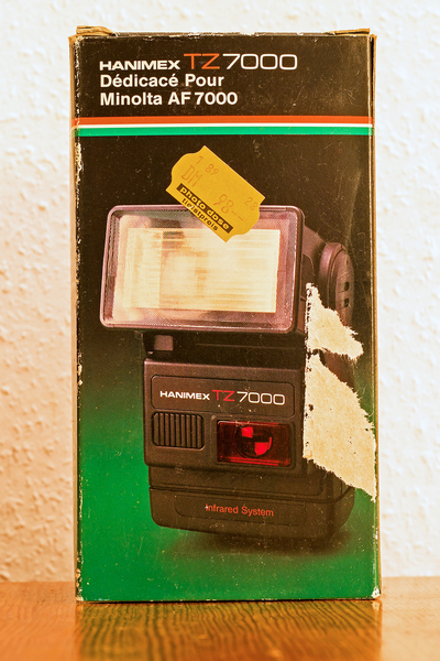 Als Zubehör das Blitzgerät, speziell für die Kamera, das Hanimex TZ7000,