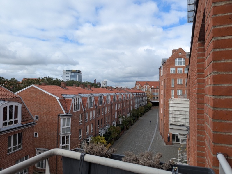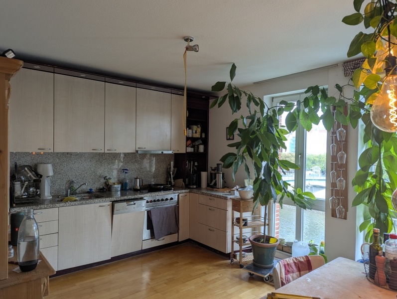 Schicke, helle, ruhige auf einer Halbinsel im Wasser, Stadtmitte möblierte Wohnung mit 100m² mit 2 Schlafzimmern, 2 Bäder, Wohnküche, Wohnzimmer und 2 Balkone.