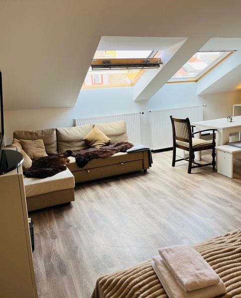 Ich vermiete eine möblierte 2-Zimmerwohung Mitten im Fesenfeld. Das Haus befindet sich in der Straße Fesenfeld, die Wohnung im Dachgeschoss des Hauses.