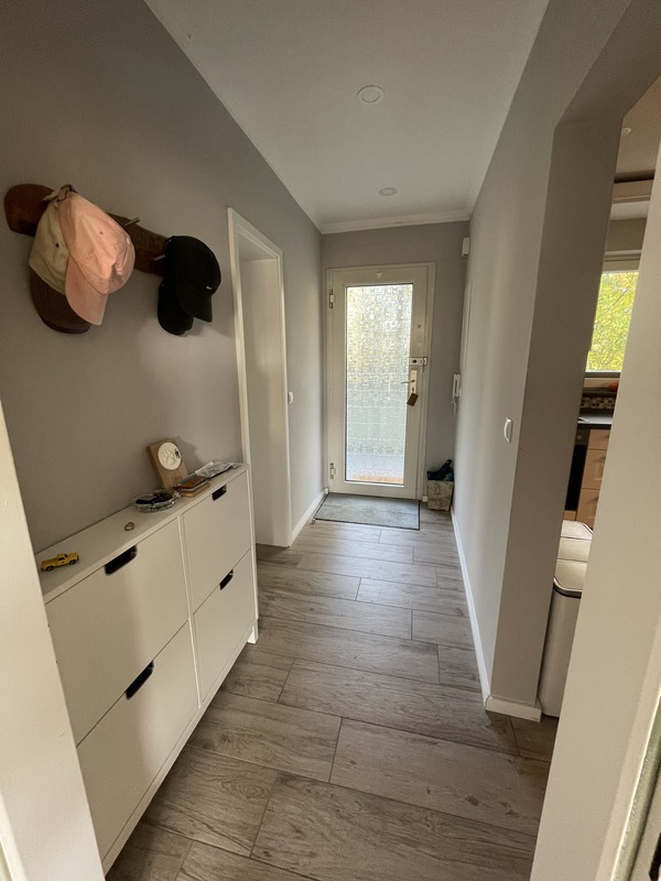 Die Ausstattung darf vom Mieter genutzt werden, Reparaturen sind vom Mieter zu tragen. Das Badezimmer verfügt über eine Dusche mit Echtglaskabine, eine Badewanne, Waschbecken und Toilette. Die Duschkabine wir schnellstmöglich erneuert. Ebenso befindet sich im Bad ein Anschluss für eine Waschmaschine / einen Waschtrockner. Im Flur befindet sich eine Gegensprechanlage für die Hauseingangstür sowie ein neuer in die Wand verankerter Schuhschrank, welcher gerne zu fairem Preis vom Vormieter übernommen werden kann.