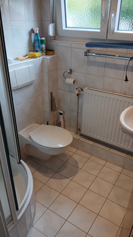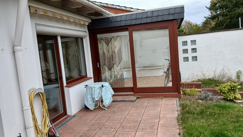 Alles ebenerdig, ideal für ältere oder behinderte Menschen. 4 helle Zimmer; Wohnküche; 2 Bäder; Wintergarten; Abstellraum; Terrasse; 100m Dachboden; Garage und Einfahrt; Gartenhaus; Kriechkleller. Das Haus ist von 1966. Fenster (z.T. 3-fach verglast) und Haustür sind neu, el. Rollläden vor allen Fenstern, Parkettböden; Brennwert-Therme Gas; Elektrik neu