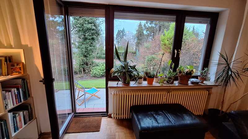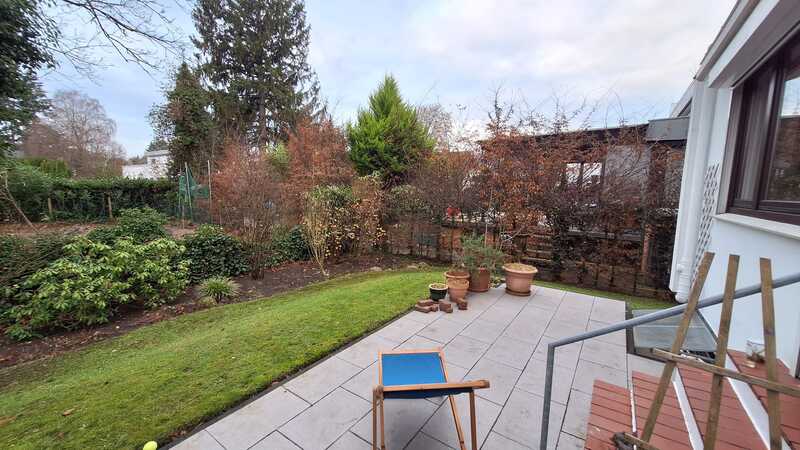 Ein besonderes Highlight ist der direkte Zugang zum Garten mit Baumbestand, der regelmäßig durch einen Gärtner gepflegt wird. Der Garten ist nach Süden ausgerichtet – hell, sonnig und sehr ruhig.