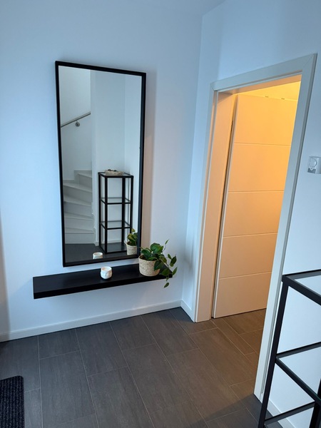 Die Wohnung verläuft über 2 Etagen. Über einen separaten Eingang gelangen Sie in einen kleinen Flur, von welchem ein weiterer Raum und die Treppe in die erste Etage abgeht. Dieser Raum eignet sich prima als Garderobe.