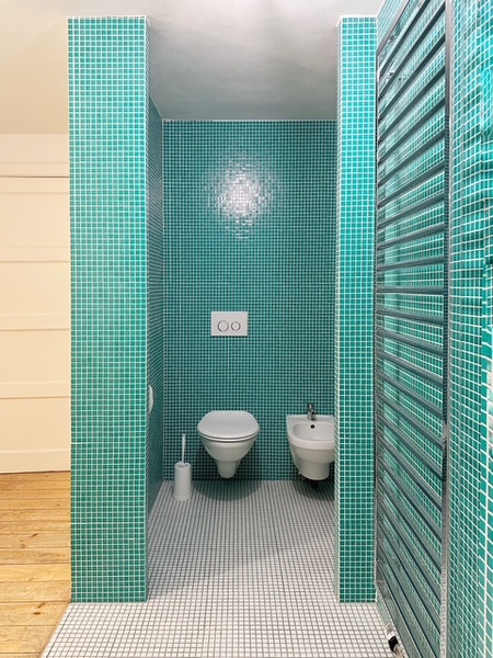 Das großzügige Badezimmer verfügt über eine Fußbodenheizung sowie ein Bidet.