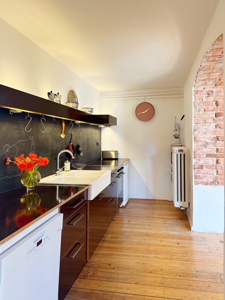 Die Wohnung ist mit viel Liebe zum Detail eingerichtet und komplett möbliert – ausgestattet mit Designermöbeln und sorgfältig ausgewählten Einzelstücken. Sie bietet alles, was man für den Alltag benötigt.