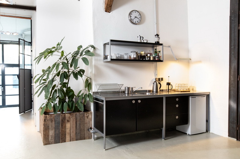 Zur Bürogemeinschaft gehört außerdem ein großer Gemeinschaftsraum mit Meetingtisch, Teeküche und Kicker, der mit genutzt werden kann.