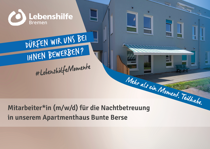 Lebenshilfe Bremen | Fachbereich Wohnen | Waller Heerstr. 55 | 28217 Bremen | karriere@lebenshilfe-bremen.de
