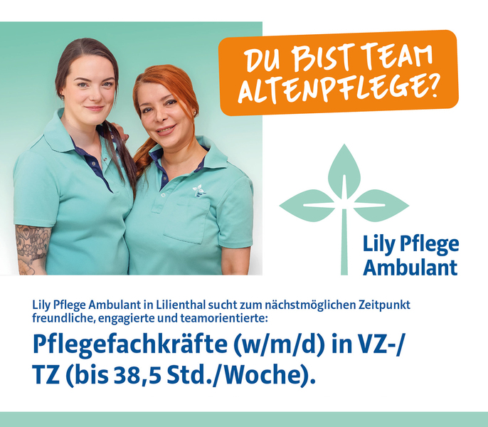 Lily Pflege Ambulant in Lilienthal sucht zum nächstmöglichen Zeitpunkt freundliche, engagierte und teamorientierte: