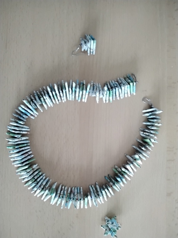Papier Landkarten Kette plus Ohrringe neu, Preis :15 Euro V.B.