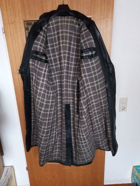 Verkaufe hier einen schönen alten schwarzen Ledermantel aus den 60er Jahren. Der Mantel ist aus einem Stück Hand gefertigt somit ist er ein einzel Stück. Die Größe ist L-XL. Der Preis ist 180 Euro VB. Abholung ist in Delmenhorst.
