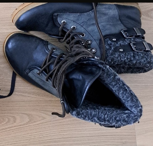 Oben am Schaft haben die Stiefel ein Fellbündchen und an der Außenseite sind zwei Schnallen. Innen sind sie kuschelig weich.