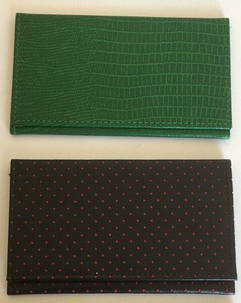 die stilvolle Art, Ihre Karten mit sich zu führen. Bewahren Sie den druckfrischen Look Ihrer Visitenkarten mit diesem eleganten Visitenkarten-Etui aus Leder, geeignet für verschiedene Visitenkarten-Formate und auch für Kreditkarten, hält Ihre Karten in Top-Kondition, in den Farben: Schwarz und Grün. Neuer und unbenutzter Artikel, Privatverkauf, siehe Fotos, Neupreis 19,95€/Stück jetzt nur 6,00€/Stück oder 2 Stück für nur 10€, Versand (€ 2,00) bei Kostenübernahme möglich