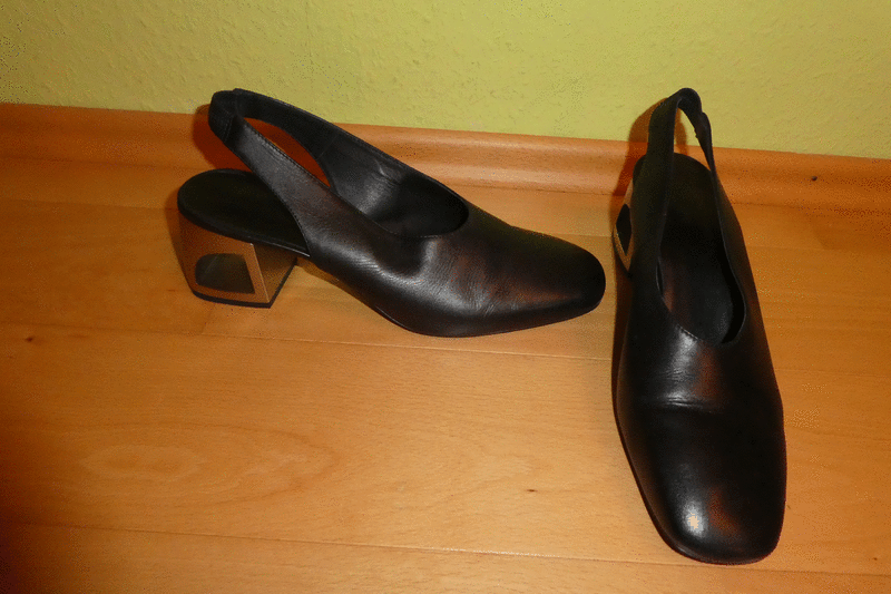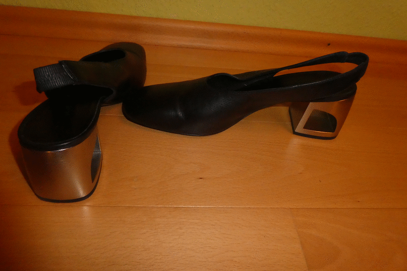 Nur 1 x getragen Chanel Pumps der Marke VIC MATIE Gr. 41 in schwarz Neupreis 255 Euro halbglänzendes Kalbleder, eckige Form und Gummiband an der Fersen Cut Out Absatz in silberfarbener Metallic Optik ein echter Hingucker Meeega bequem und edel NUR 100 Euro