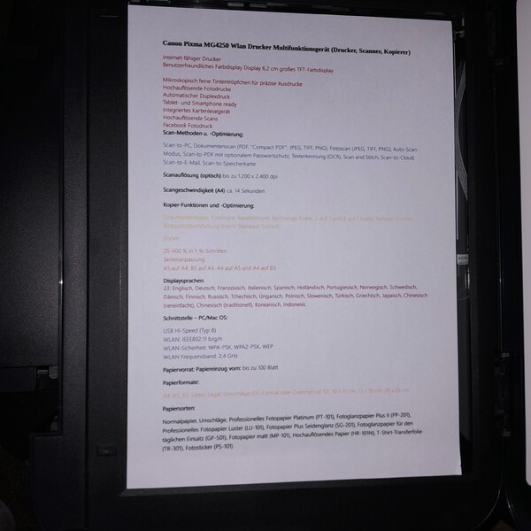 Canon Pixma MG4250 Wlan Drucker Multifunktionsgerät (Drucker, Scanner, Kopierer) mit vollen Patronen. Das Gerät druckt sehr scharf in Bildqualität und ist voll funktionstüchtig. Gerät kann getestet werden. Preis 35 € Festpreis.