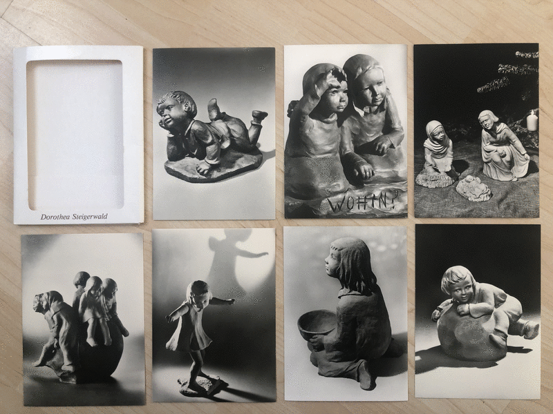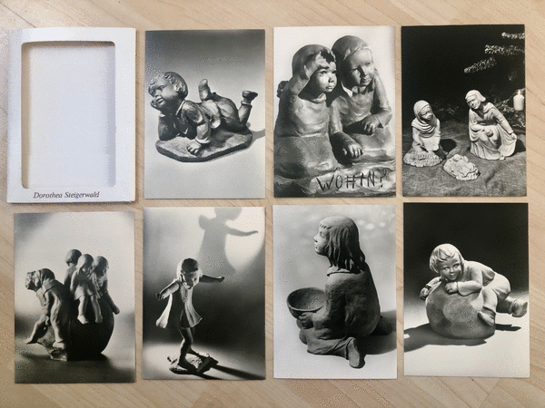 Brendow Verlag, „Bleib sein Kind“ Die bekanntesten Motive von Dorothea Steigerwald sind zu einem Sinnbild für Geborgenheit geworden. Die offene, starke Hand Gottes, in die sich das Kind flüchtet und Geborgenheit, ... original Karten (Echtfoto) um 1950, der Zustand ist sehr gut und unbenutzt. Diese Rarität sucht jetzt einen liebevollen Neubesitzer, ein tolles Geschenk für einen Karten-Fan oder eine Trophäe für Ihre Sammlung. Tierfreier Nichtraucherhaushalt! Privatverkauf, siehe Fotos, jetzt nur 3,00€ je Karte oder alle 7 Karten zusammen nur 17€, Versand (€ 2,00) bei Kostenübernahme möglich